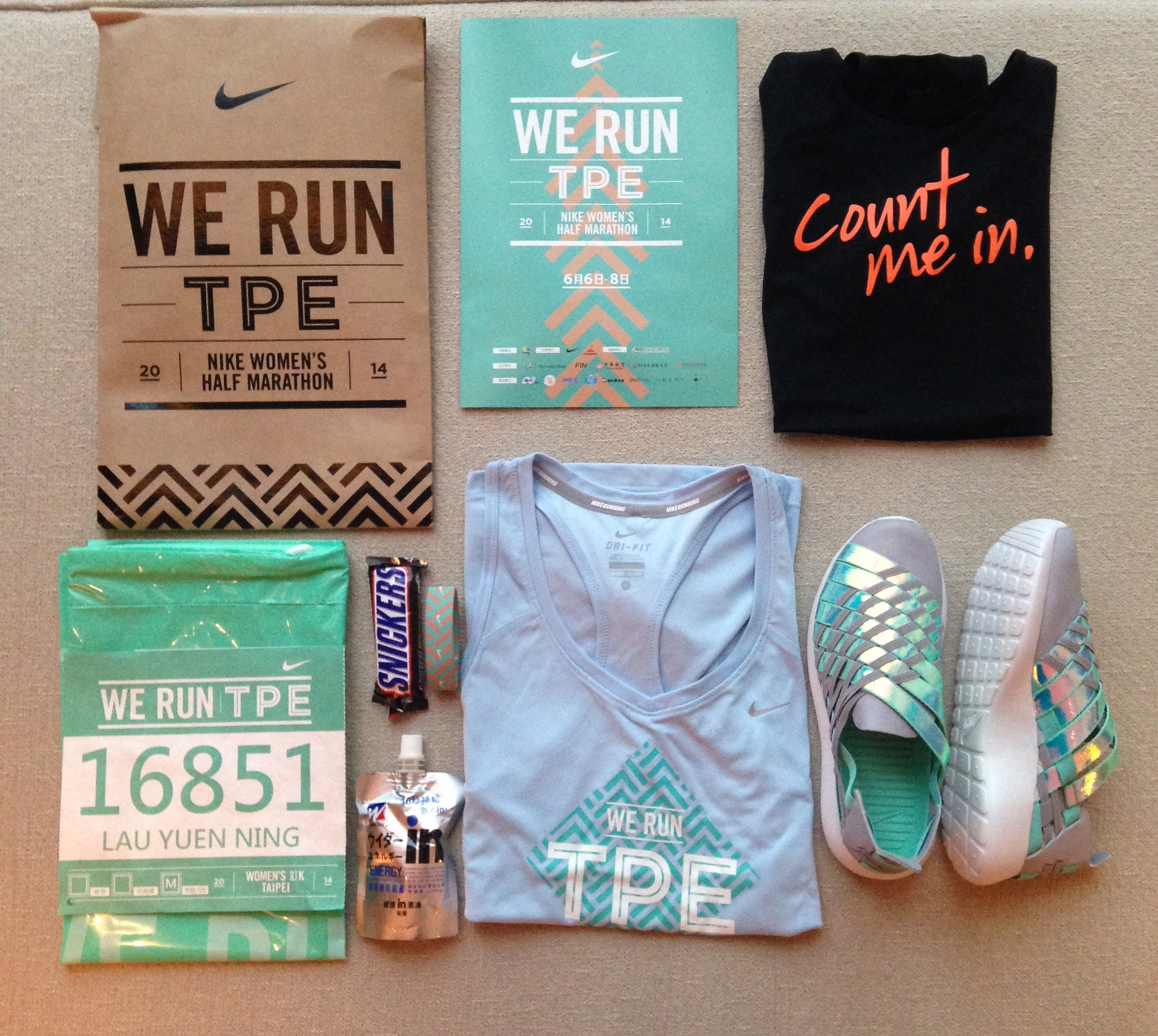 Ninglau May 17, 2015 Image energy my first half marathon. Taipei, Nike women half marathon, June 2014. #weruntpe 那天是35度高溫,而且天氣相當不穩定,前天晚上一直下大雨。 一起訓練了幾個月的跑友們:Onki, Candy and 小雷 在微雨中跑完第一個半馬,球鞋也沾滿泥。 回港收到兒子的字條:) Share this: Click to share on X (Opens in new window) X Click to share on Facebook (Opens in new window) Facebook Like Loading... Related