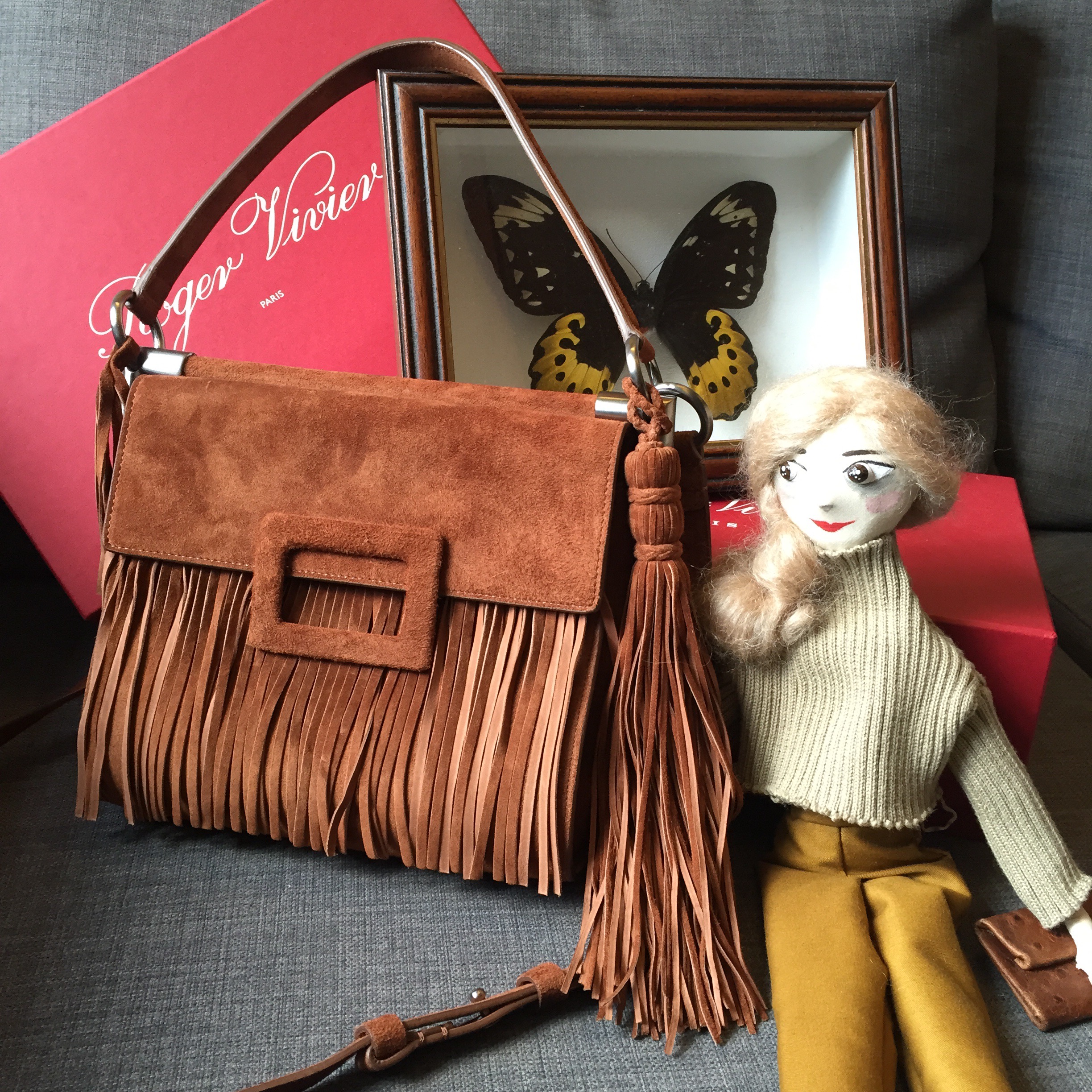 這個2015秋冬的Roger Vivier經典款式miss viv波希米亞流蘇手袋是我近日的心頭好,miss viv是在2009誕生為法國第一夫人carla bruni-sarkozy而特別設計的,之後每年也在演變,小小手袋不單設計時尚有肩帶,而且內籠多格方便,成為時尚it bag及女生Dream bag之列。多位名人也是她的粉絲,紅透的Taylor swift是其中一位。