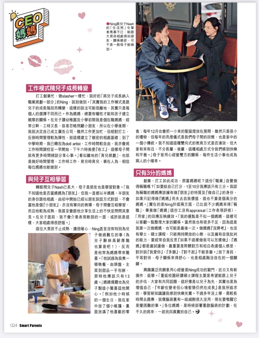 多謝親子王的訪問,比我同兒子在呢個年齡及階段留下一個回憶。在這個電子化傳媒的時代,平時做其他訪問也不一定有印刷版的留念,而且一直以來做訪問的次數也不少,多謝傳媒朋友的賞識,但一個專訪探討我的育兒歷程,印象中好似是第一次,會好好保存。