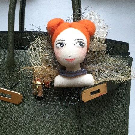 原來我已經有兩種不同的doll brooch在我的系列𥚃,這是version 1– 用紗布托底的這種很有流缐動感,又像古董飾物。